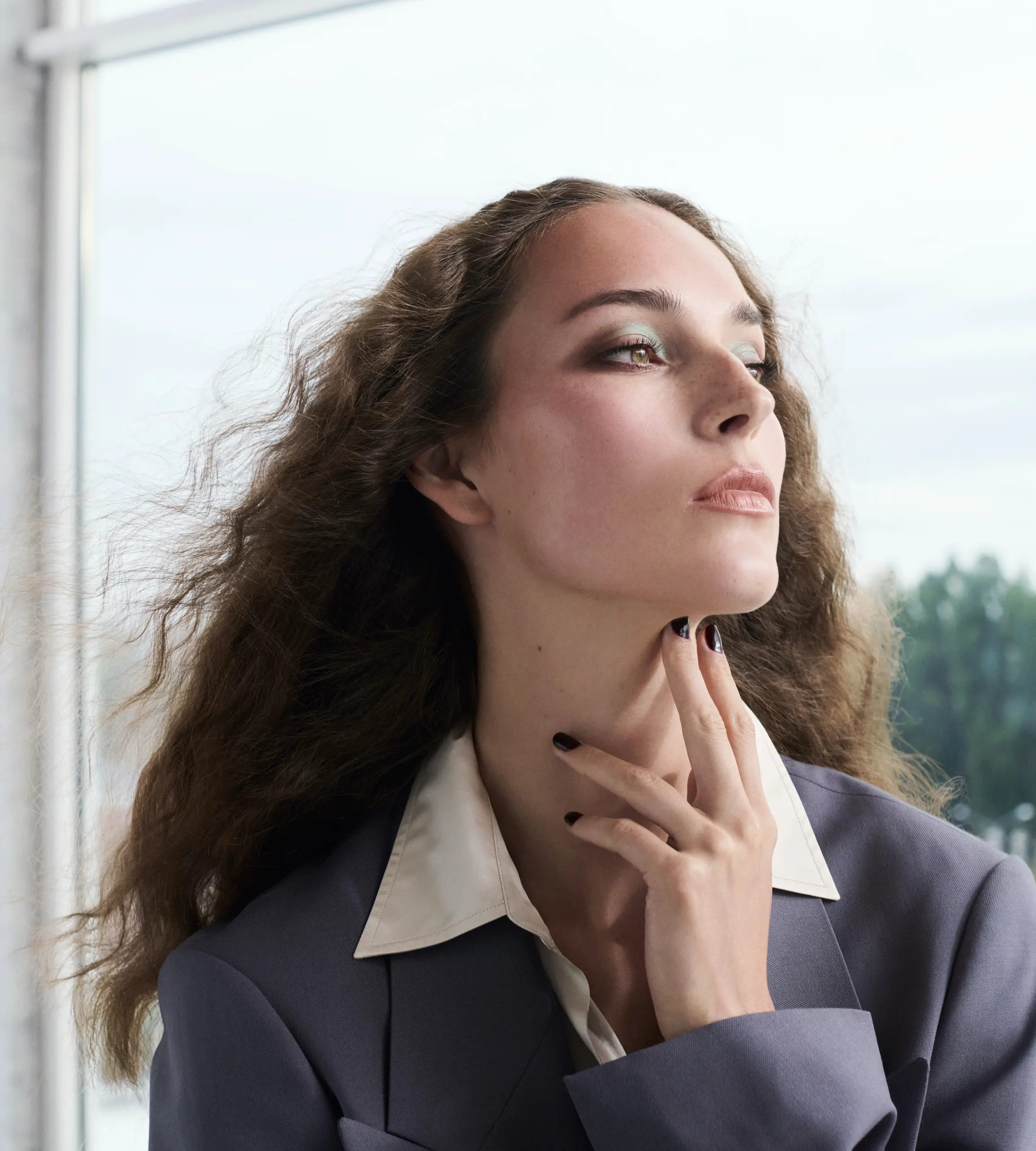 Ein fesselnder Look mit subtiler Exotik. Dem schimmernden Mintgrün des Eyeshadow Pen Tropical Breeze steht die kühle Präzision gegenüber, mit der der Pencil for Eyes Walnut Silk die äußeren Augenwinkel akzentuiert. Selbstbewusst und eigenwillig, wie die mit dem Pencil for Lips Dune leicht überzeichnete Lippenkontur, die nahtlos in den warmen Nude-Ton von Sensual Lipstick Savannah übergeht.